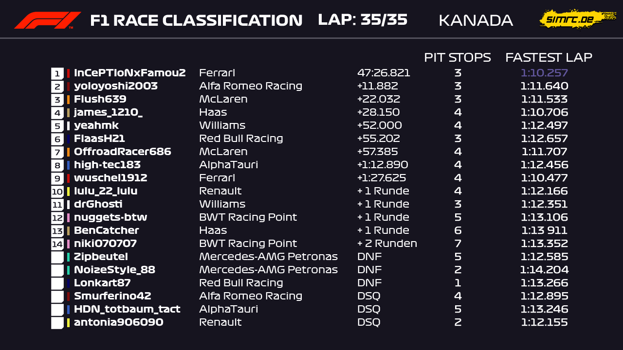 Rennen: Kurzer Text zum Rennen ( Vorfälle, besondere Überholmanöver, Gedanken zu Boxenstops, Undercuts usw.)