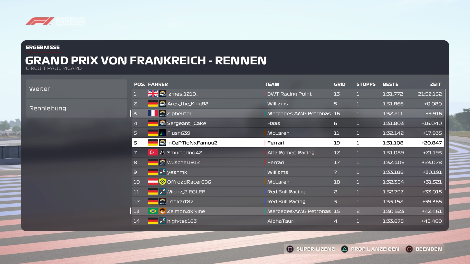 Ich war dann erneut letzter und habe versucht den Anschluss nicht komplett zu verlieren. Durch einen Stopp, einen DNF und eine Strafe kam ich dann als 16. ins Ziel.