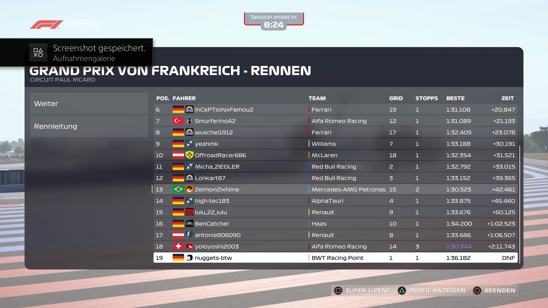also lieber auf sicherheit in die Box und auf rot, dann auf P3 und in der letzten Runde haben die aber leider erst gegriffen, sodass es nur P3 war, jedoch mit einer 10s Strafe, mal schauen was da noch passiert, vielleicht geht ja noch P2.