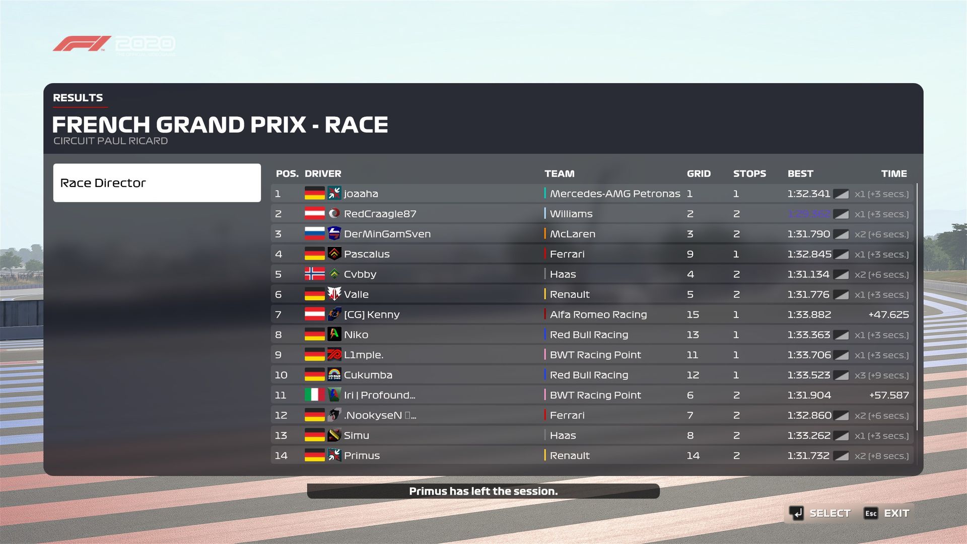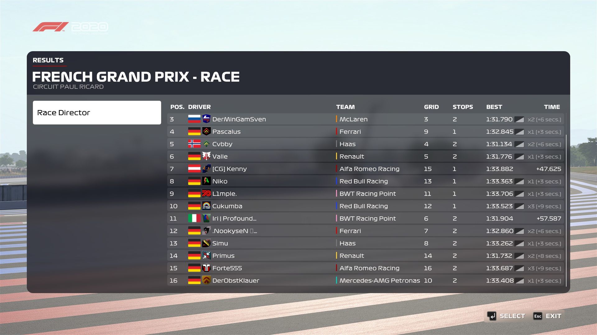 Rennen: Kurzer Text zum Rennen (Vorfälle, besondere Überholmanöver, Gedanken zu Boxenstopps, Undercuts usw.)
