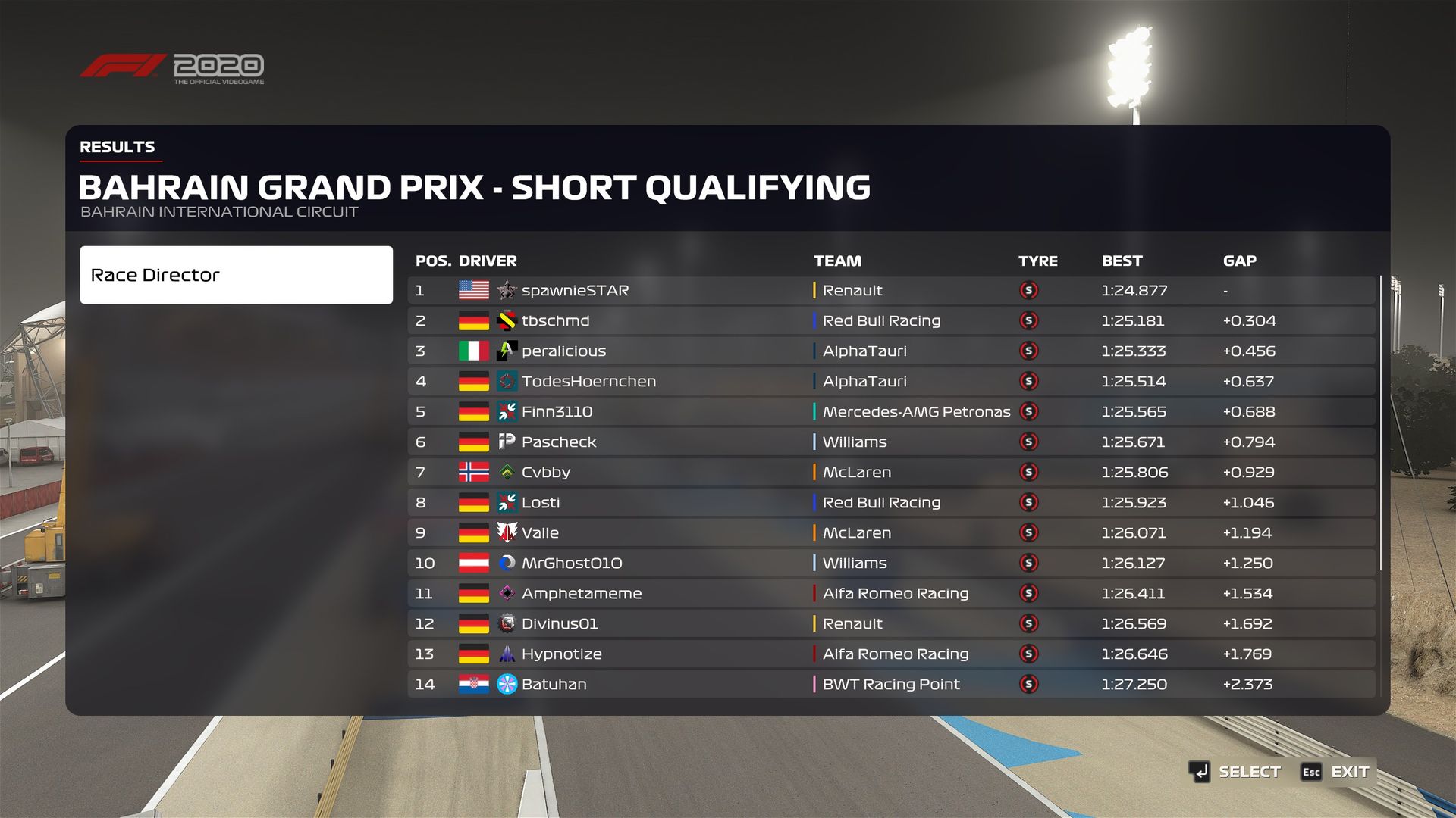 ZitatAlles anzeigenQualifyingergebnis:
