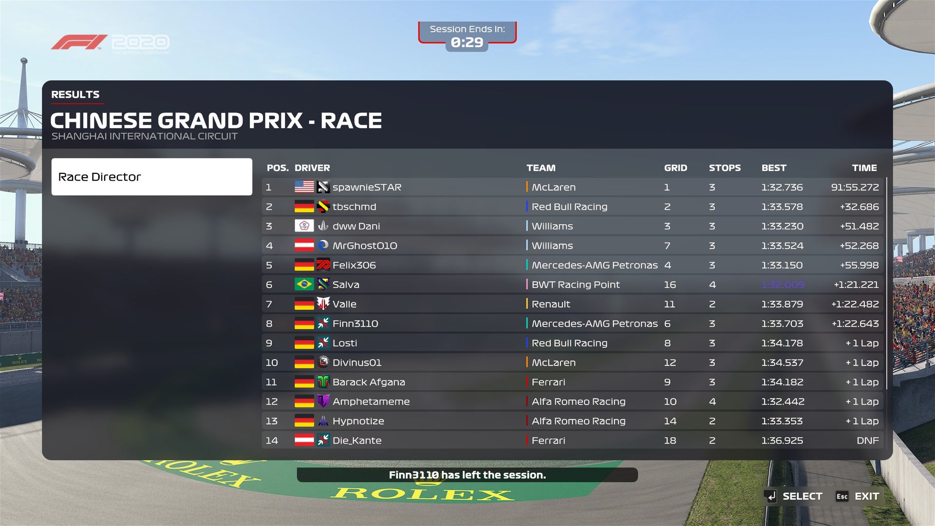 ), stattdessen verbremste ich mich aber konsequent in jede 2te Kurve. R15, das VSC kommt raus, perfekter Zeitpunkt einfach mal 100m später für die nächste Kurve zu bremsen, denn ich war grade perfekt an der Boxeneinfahrt. Also "schnellen" Stopp mitgenommen, bis zum Regen sollten die