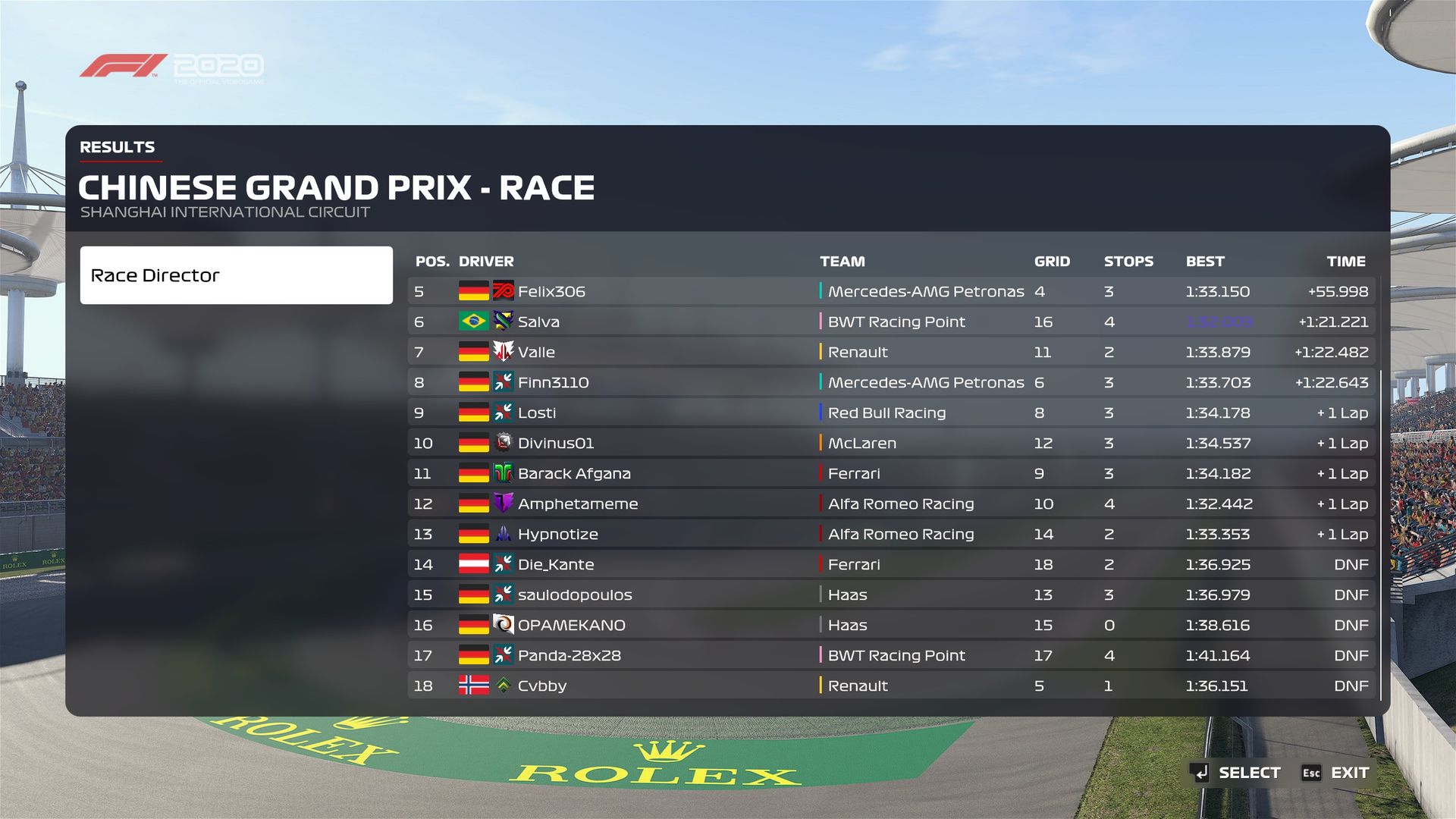 Rennen: Kurzer Text zum Rennen (Vorfälle, besondere Überholmanöver, Gedanken zu Boxenstopps, Undercuts usw.)