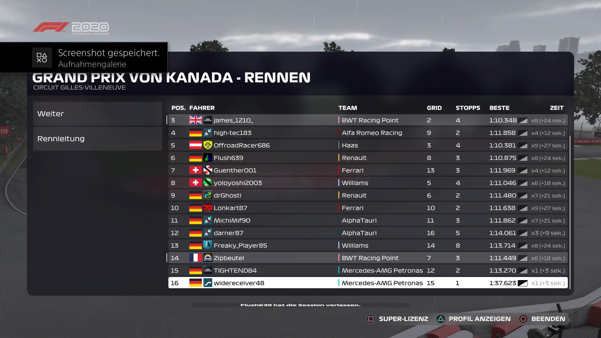 Rennen: Kurzer Text zum Rennen ( Vorfälle, besondere Überholmanöver, Gedanken zu Boxenstops, Undercuts usw.)