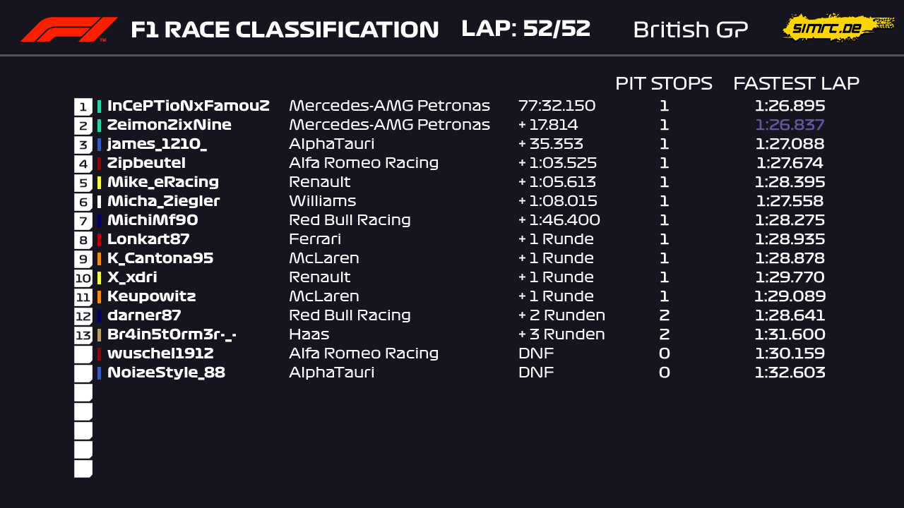 Rennen: Kurzer Text zum Rennen ( Vorfälle, besondere Überholmanöver, Gedanken zu Boxenstops, Undercuts usw.)