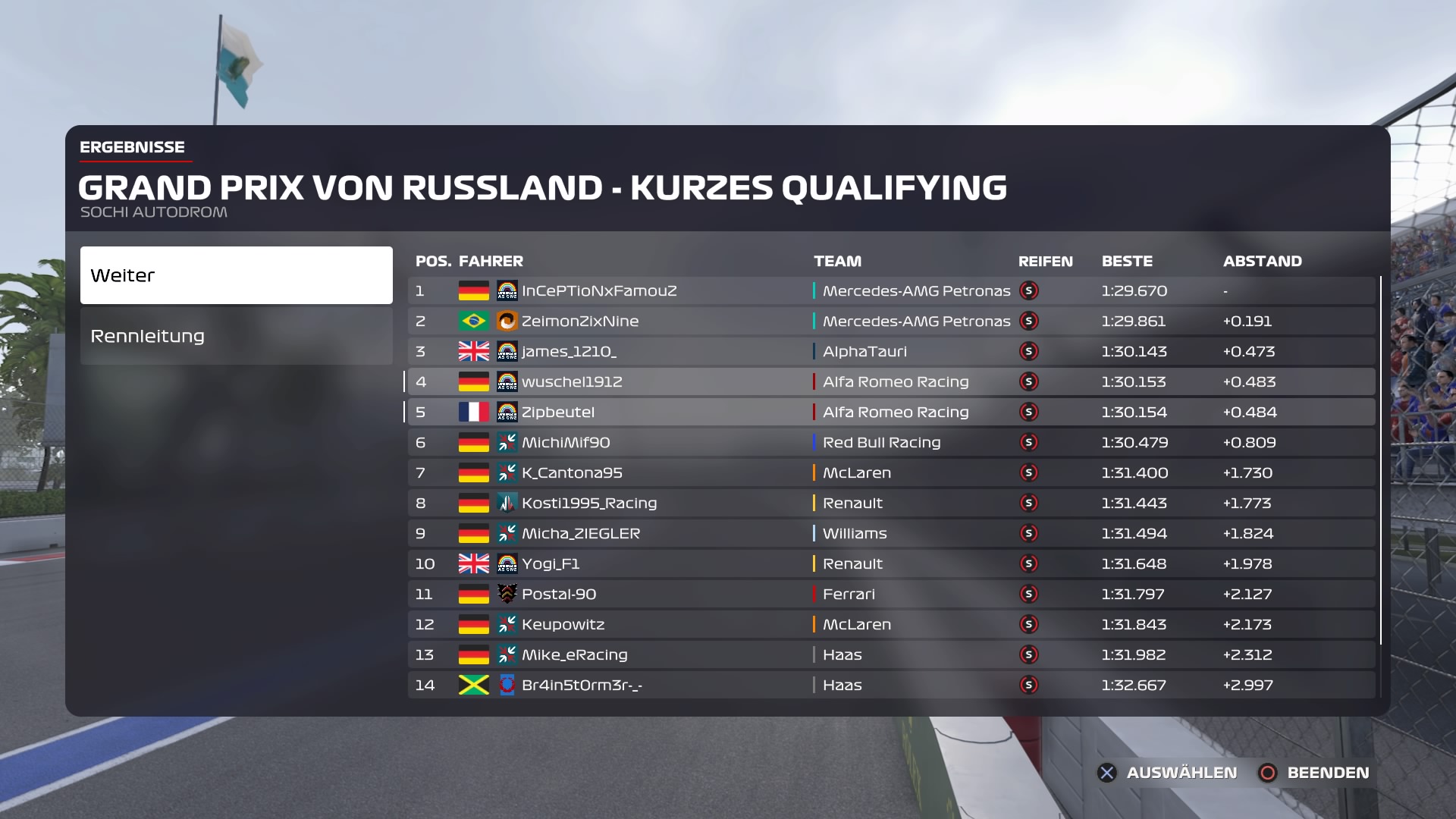 Qualifyingergebnis:
