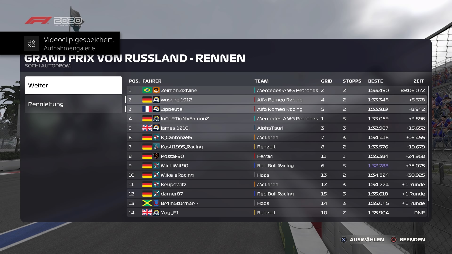 Rennen: Kurzer Text zum Rennen ( Vorfälle, besondere Überholmanöver, Gedanken zu Boxenstops, Undercuts usw.)