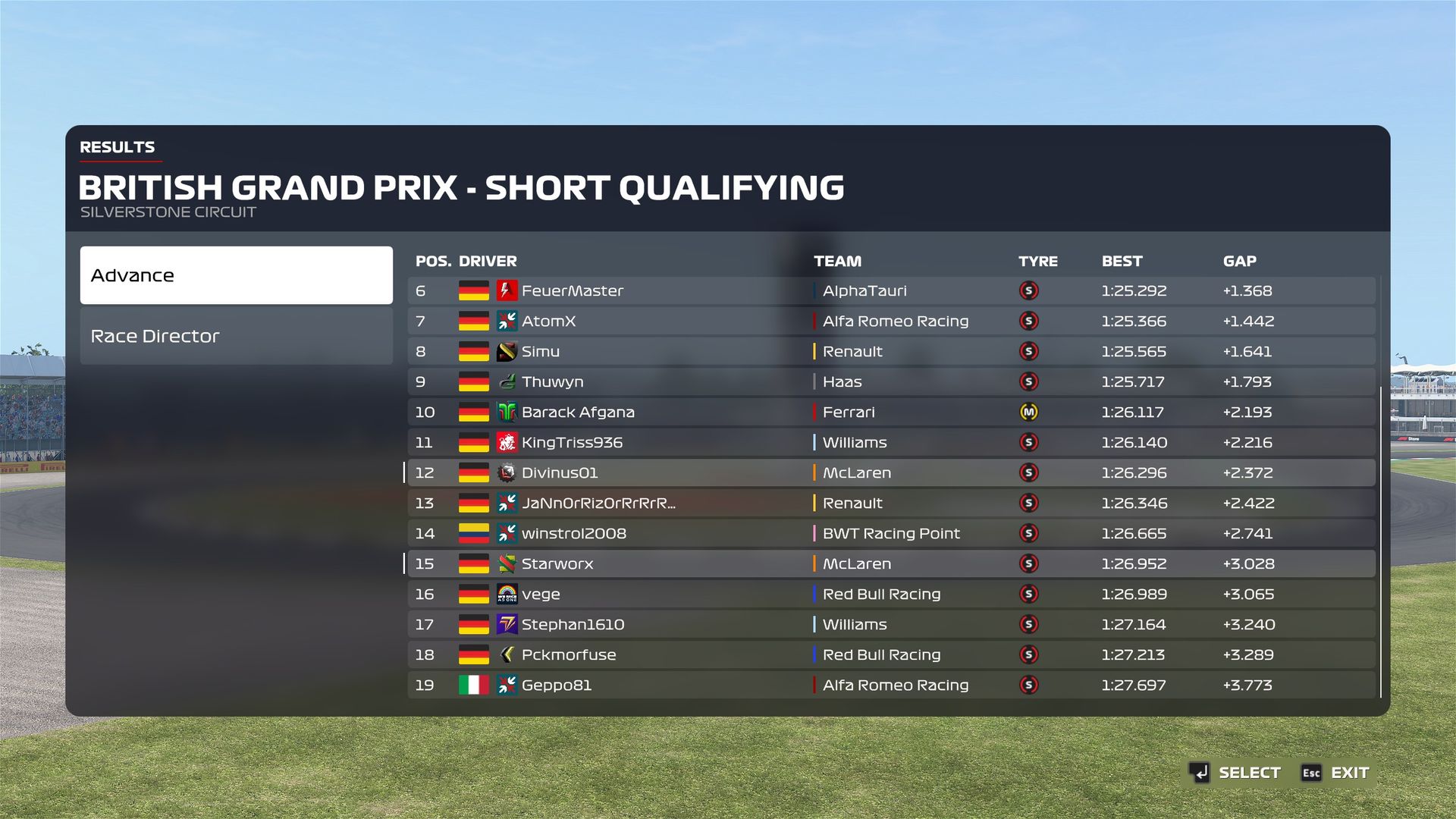 ZitatAlles anzeigenQualifyingergebnis: