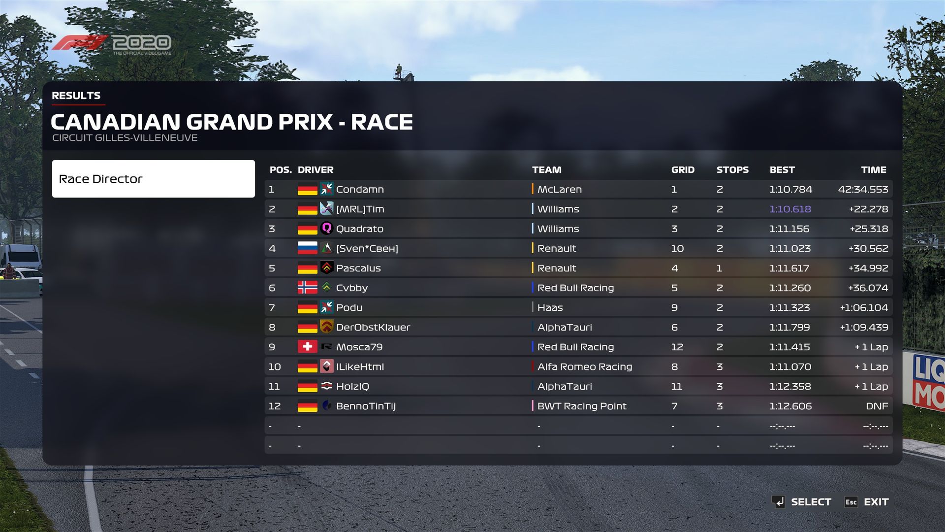 Rennen: Kurzer Text zum Rennen (Vorfälle, besondere Überholmanöver, Gedanken zu Boxenstopps, Strategien usw.)