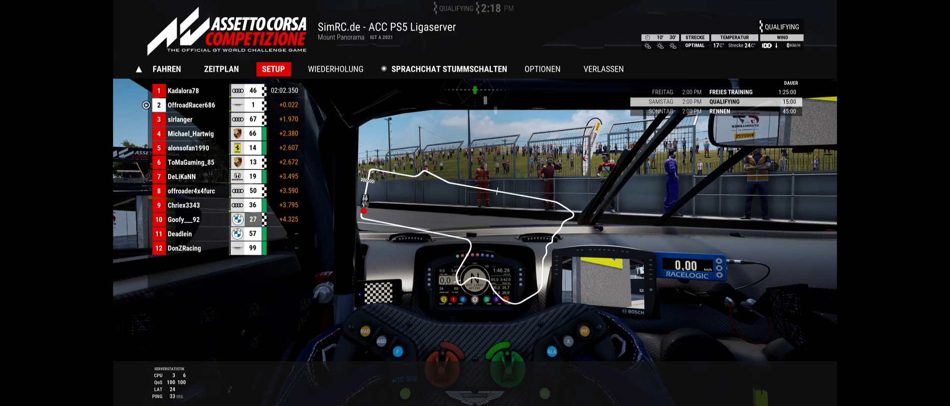 Quali 1: ab 19:00 Uhr (15Minuten Q.-zeit + 5 Minuten Pause nach dem Q.)