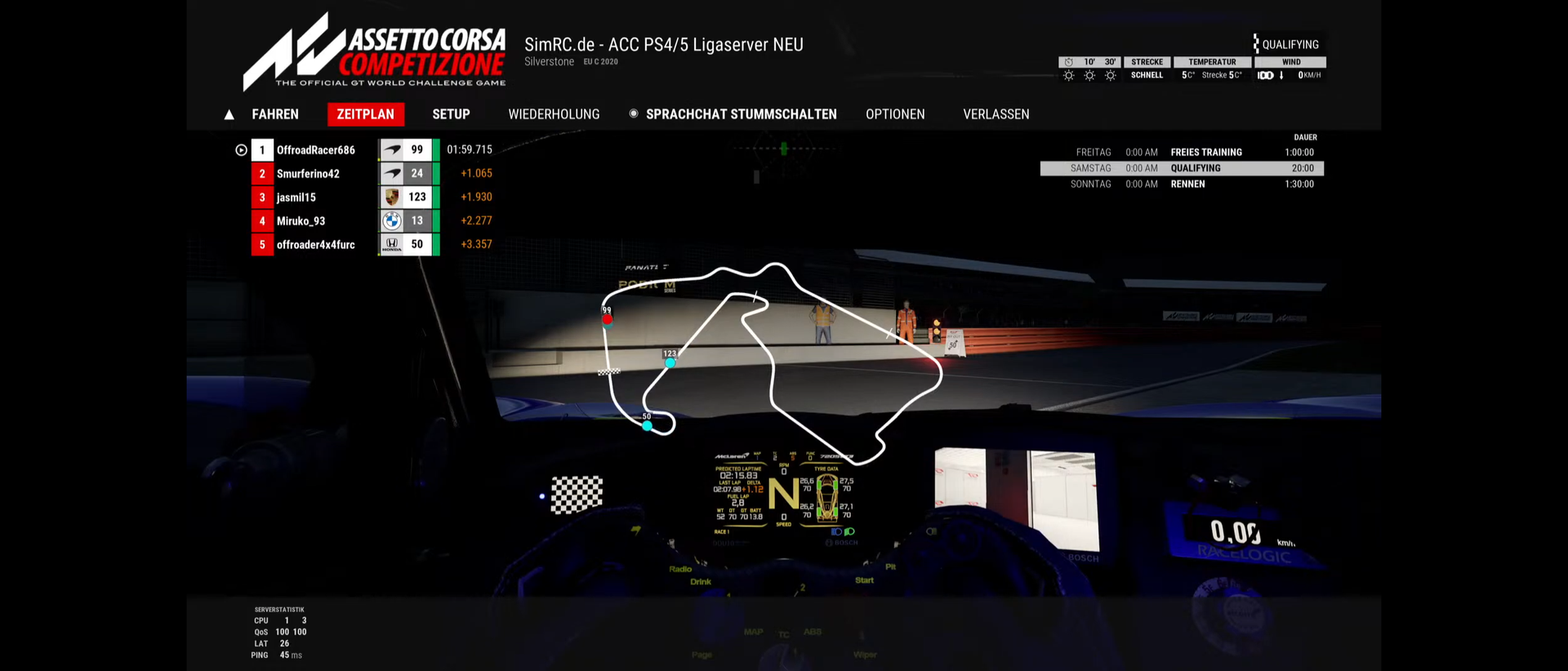 Quali 1: ab 19:00 Uhr (15Minuten Q.-zeit + 5 Minuten Pause nach dem Q.)