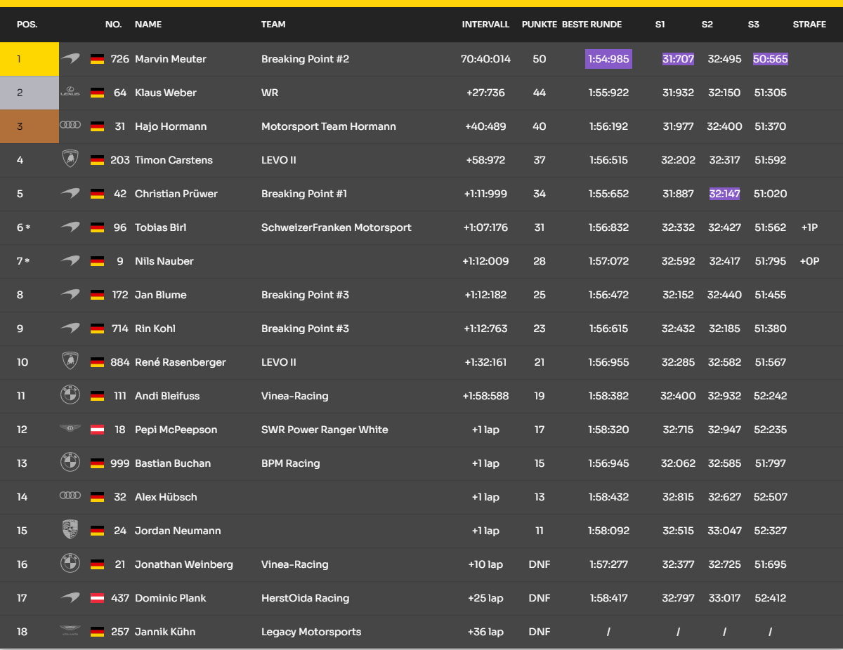 Fahrer Strafe Split Andrix #27 6 Strafplätze + 5 Strafpunkte Pro-Am @amyen #77 2 Strafplätze + 2 Strafpunkte Pro-Am DerEchteEben #726 4 Strafplätze + 2 Strafpunkte Pro-Am Buddy-High5 #999 2 Strafplätze + 1 Strafpunkt Pro-Am c_4 #420 4 Strafplätze + 1 Strafpunkt Pro-Am @Hajo Hormann #31 2 Strafplätze Pro-AM DERpaul #5 2 Strafplätze + 1 Strafpunkt Pro Tommy1282 #82 2 Strafplätze + 1 Strafpunkt Pro TheBigO #70 DSQ (R2) + 7 Strafplätze (für R4, da Rennsperre R3) + 6 Strafpunkte Pro buddabrot33 #733 4 Strafplätze + 3 Strafpunkte (für R3 -Imola, da DNF) Pro Cvbby #39 1 Strafplatz + 1 Strafpunkt + Verwarnung Pro AKO1894 #58 2 Strafplätze + 1 Strafpunkt Pro Reacontom #95 2 Strafplatz + 1 Strafpunkt Pro Mirvet #612 3 Strafplätze + 2 Strafpunkte Pro @winstrol #88 3 Strafplätze + 2 Strafpunkte Pro efjay #26 4 Strafplätze + 3 Strafpunkte Pro jasko #30 2 Strafplätze + 1 Strafpunkt Pro Webbster #3 1 Strafplätze + 2 Strafpunkte Pro Fabson4821 #48 1 Strafpunkt Pro JeffGaming023 #23 Verwarnung Pro @Mathias Pritsche #852 Verwarnung Pro pera #41 Verwarnung Pro Buddy-High5 #999 Verwarnung Pro-AM Jan Blume #172 3 Strafplätze + 2 Strafpunkte (für R3 - Imola, da DNF) Pro-AM Pepi McPeepson #18 Verwarnung Pro-AM Padmaster #94 Verwarnung Pro-AM travis_marius #15 1 Strafplatz + 2 Strafpunkte Pro-AM Alex Hübsch #32 1 Strafplatz + 2 Strafpunkte Pro-AM Helderffg #555 Verwarnung + 1 Strafpunkt Pro-AM Andreas 68 #386 Verwarnung Pro-AM DomiH0RIZ0N #437 Verwarnung Pro-AM Jin #357 Verwarnung Pro-AM @Rasi84 #884 3 Strafplätze + 2 Strafpunkte Pro-AM Sn0w #317 2 Strafplätze + 2 Strafpunkte (für R3 -Imola, da DNF) Pro-AM Andre_450 #666 Verwarnung Pro-AM Starworx #42 Verwarnung Pro-AM _________________________________________________________________________________________________________________________