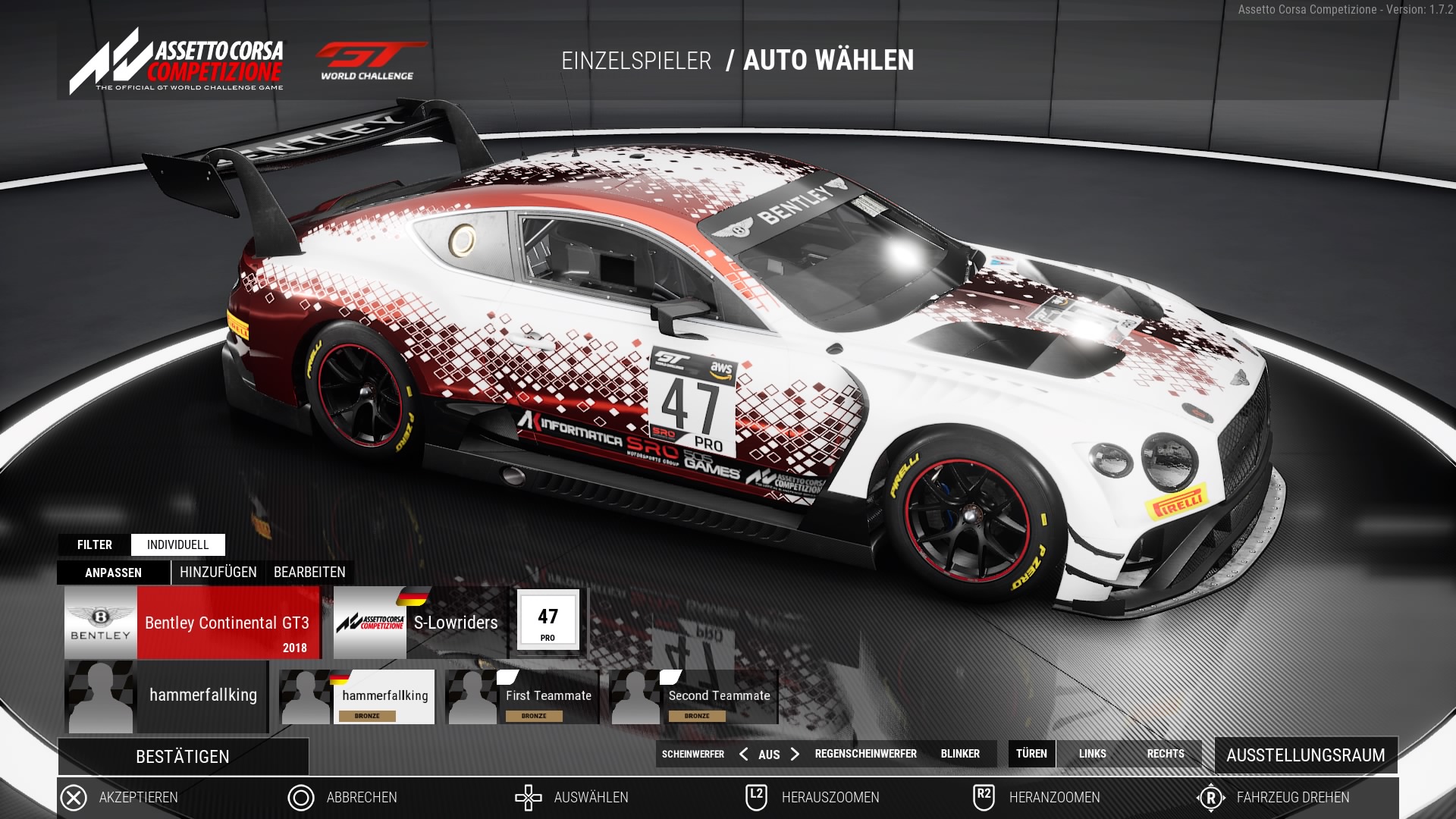 Qualifyingergebnis: P16 (Absolut Chaos bei mir. Erstes Mal überhaupt Regen in ACC. Keine Scheibenwischer oder Scheinwerfer belegt auf Lenkrad. Dazu kommt noch das ich auf der falschen Taste gedrückt habe und mein Einstellungen gelöscht hatte fürs Lenkrad. Das wären des Quali wieder eingestellt.) Sorry an alle die ich irgendwie behindert habe.