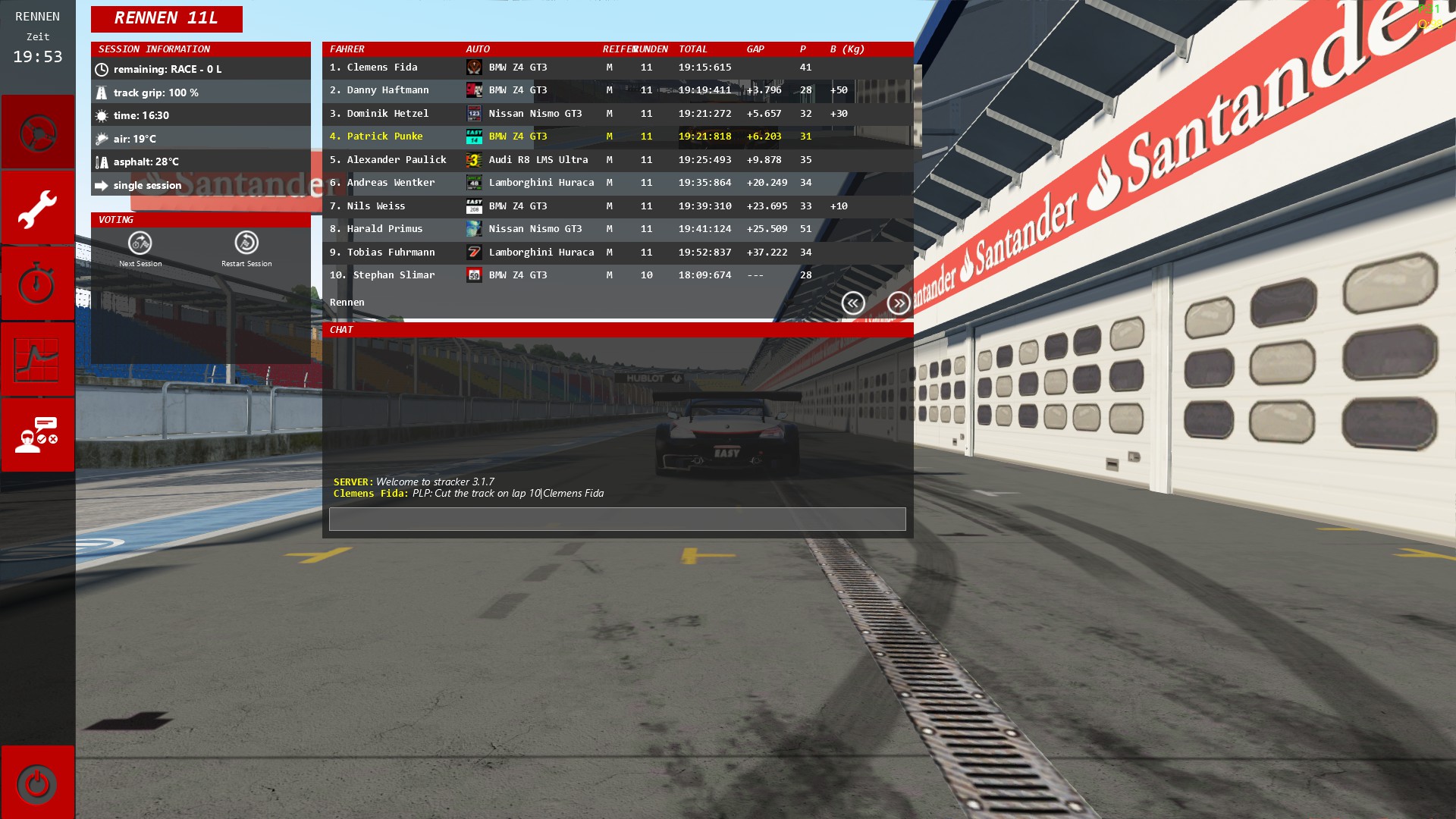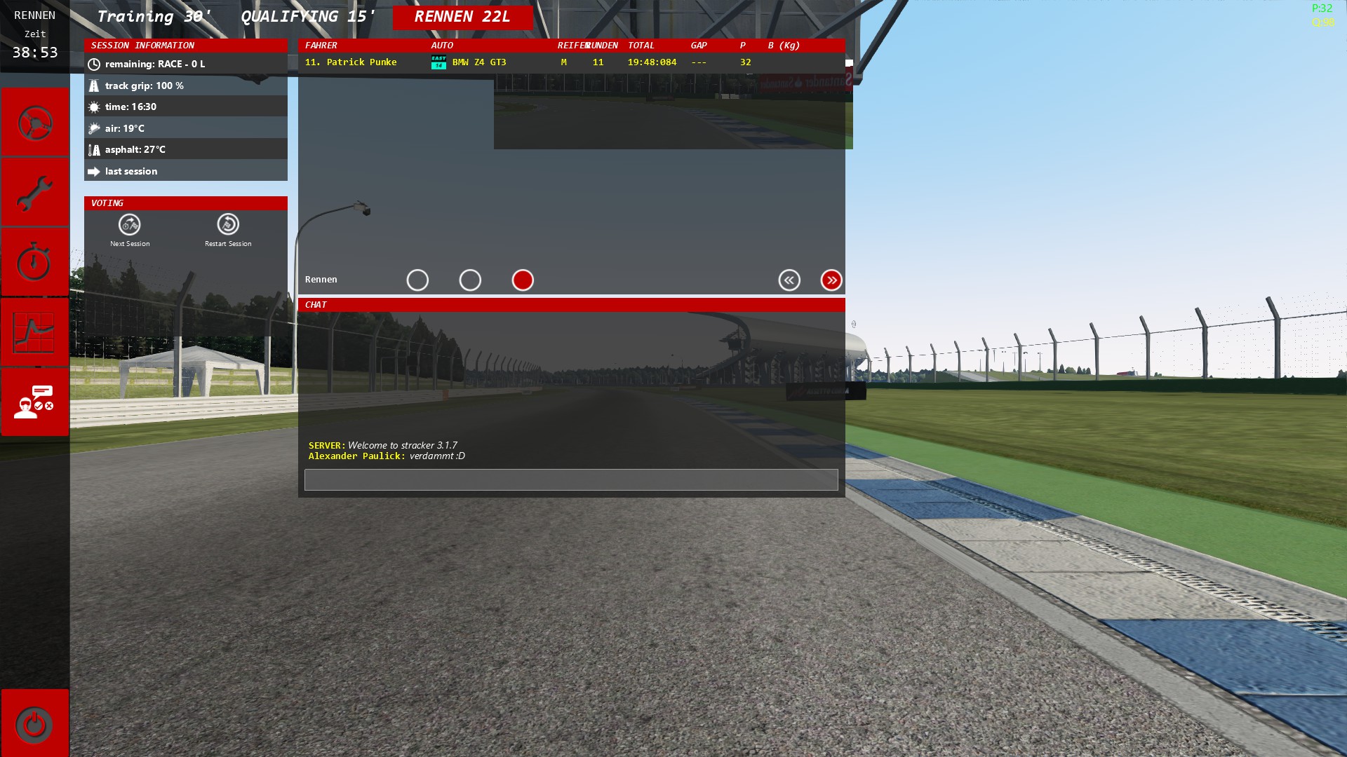 So kamm der Regen auch und ich wahr auf P3 wieder . Paar runden vor Schluss habe ich dann noch ein schönes Duell mit Andrei gefahren was auch Spaß gemacht hat.